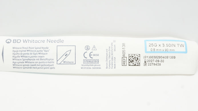 - BD 405138 Whitacre Pencil Point Spinal Ndle 25Ga x 3.50inch
