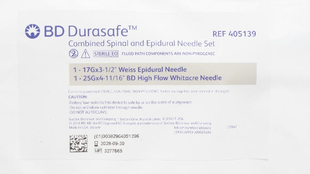 - BD 405139 Durasafe Combined Spinal & Epidural Ndle. Set