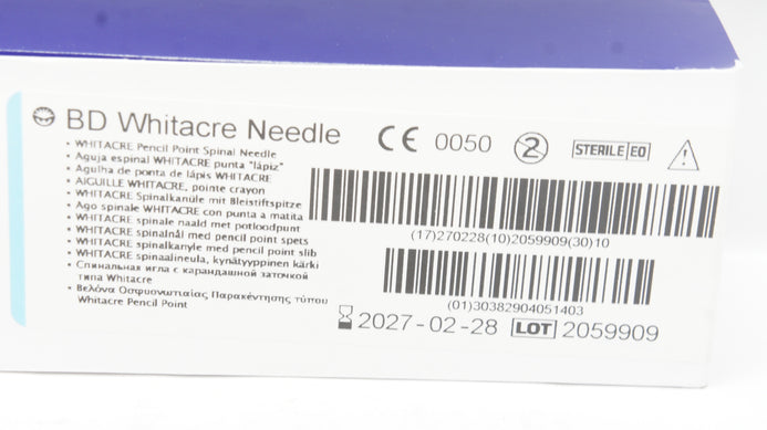 - BD 405140 Whitacre Pencil Point Spinal Ndle 25GA x 5.00inch - Box of 10