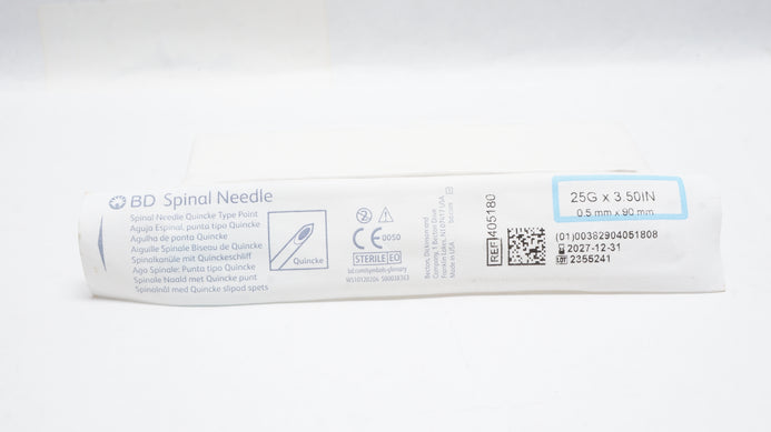 - BD 405180 Spinal Ndle Quincke Type Point 25G x 3.50inch