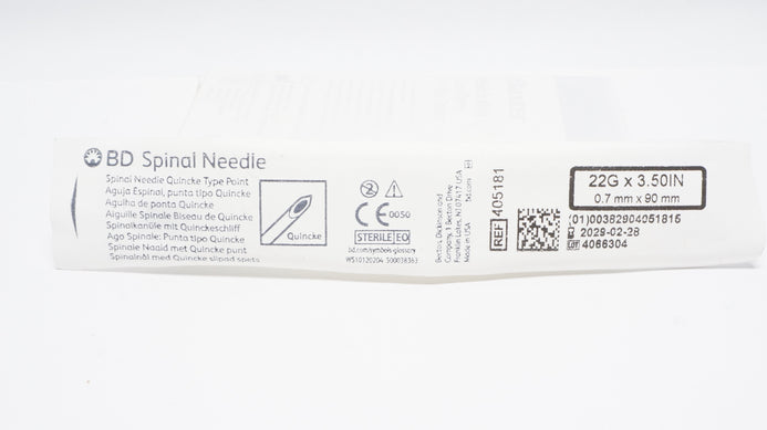 - BD 405181 Spinal Ndle Quincke Type Point 22G x 3.50inch