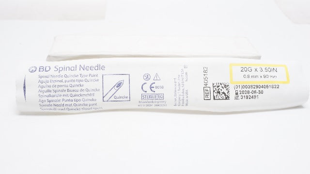 - BD 405182 Spinal Ndle Quincke Type Point, 20G x 3.50inch