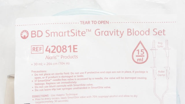 - BD 42081E Alaris SmartSite Gravity Blood Set, 15Drops/mL 30ml x 104inch
