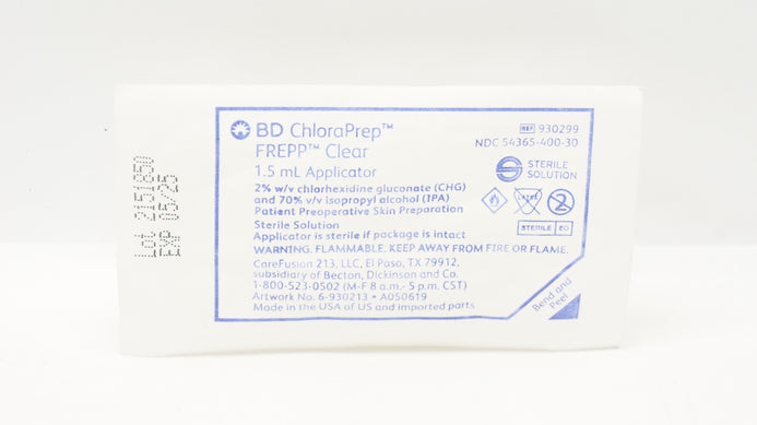 - BD 930299 ChloraPrep FREPP Clear 1.5 mL Applicator