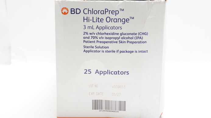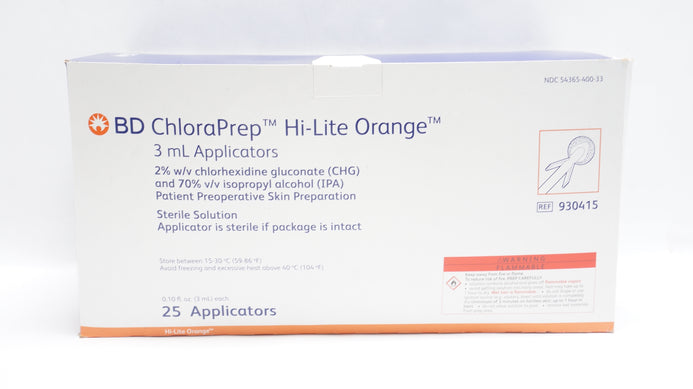 - BD 930415 ChloraPrep Hi-Lite Orange 3mL Applicators - Box of 25