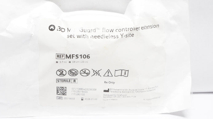 - BD MFS106 MaxGuard Flow Controller Extension Set w/ Needleless Y-site 23inch