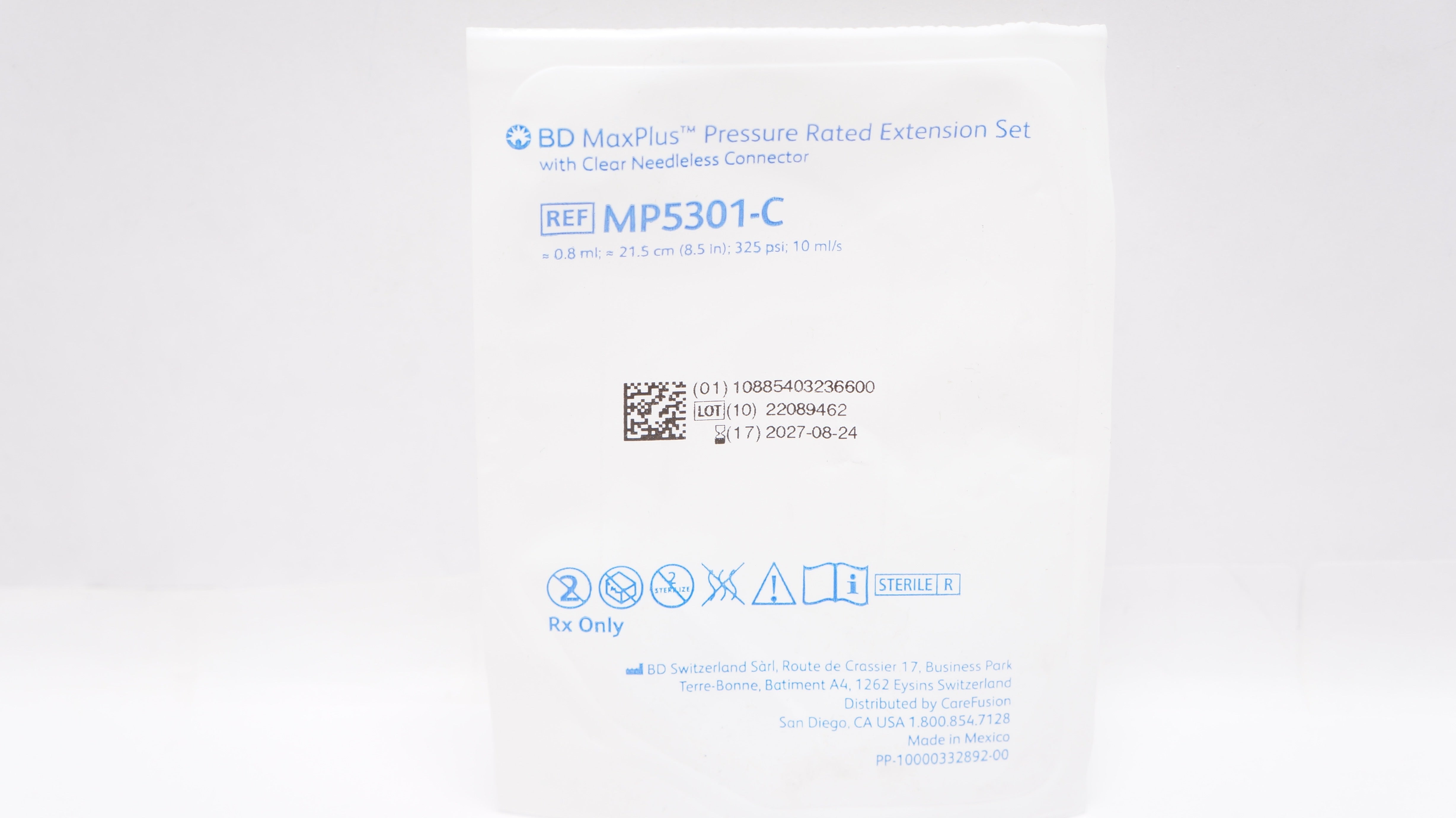- BD MP5301-C MaxPlus Pressure Rated Extension Set 0.8ml x 8.5inch 325psi 10ml/s