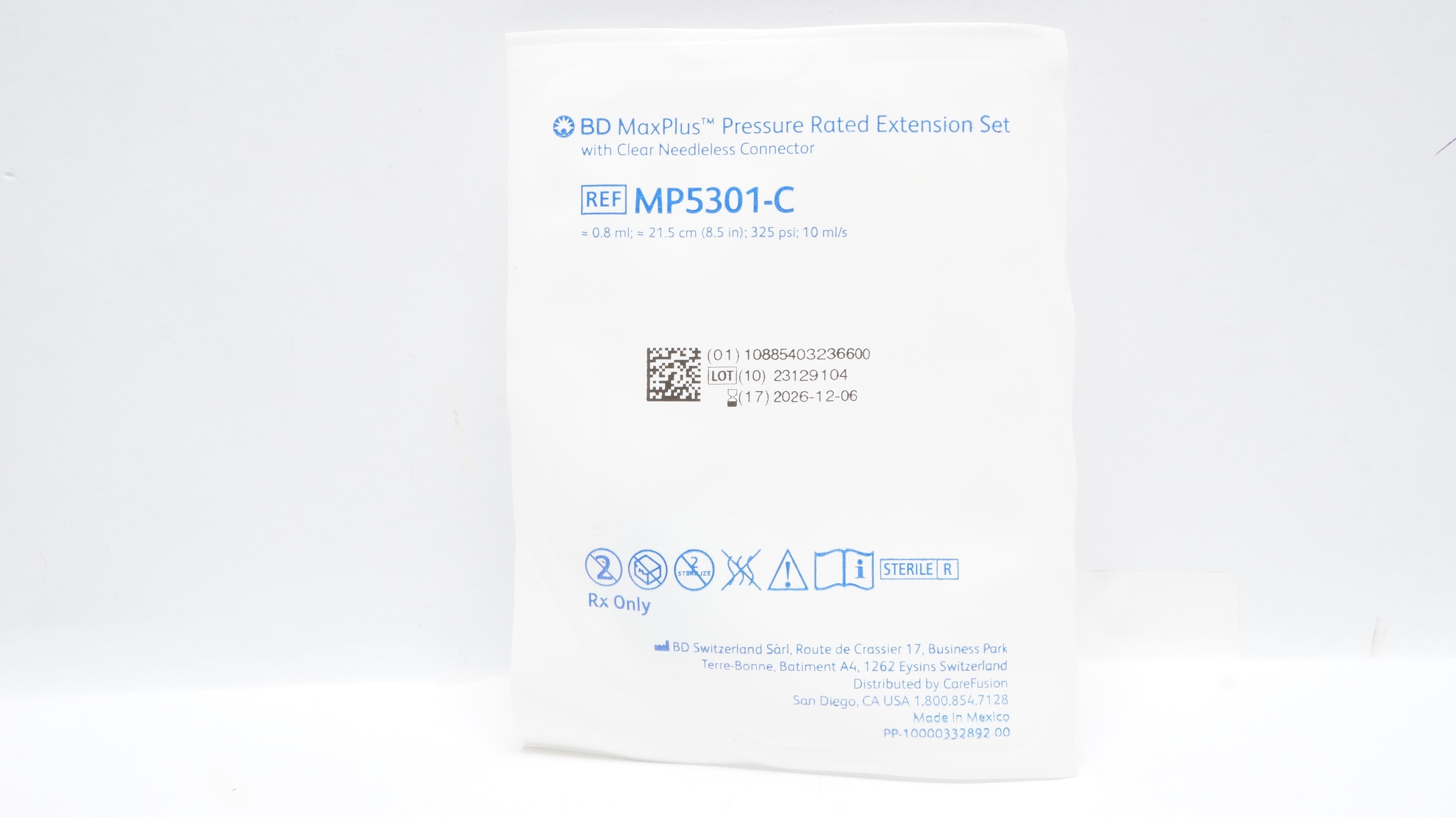 - BD MP5301-C MaxPlus Pressure Rated Extension Set 0.8ml x 8.5inch 325psi 10ml/s