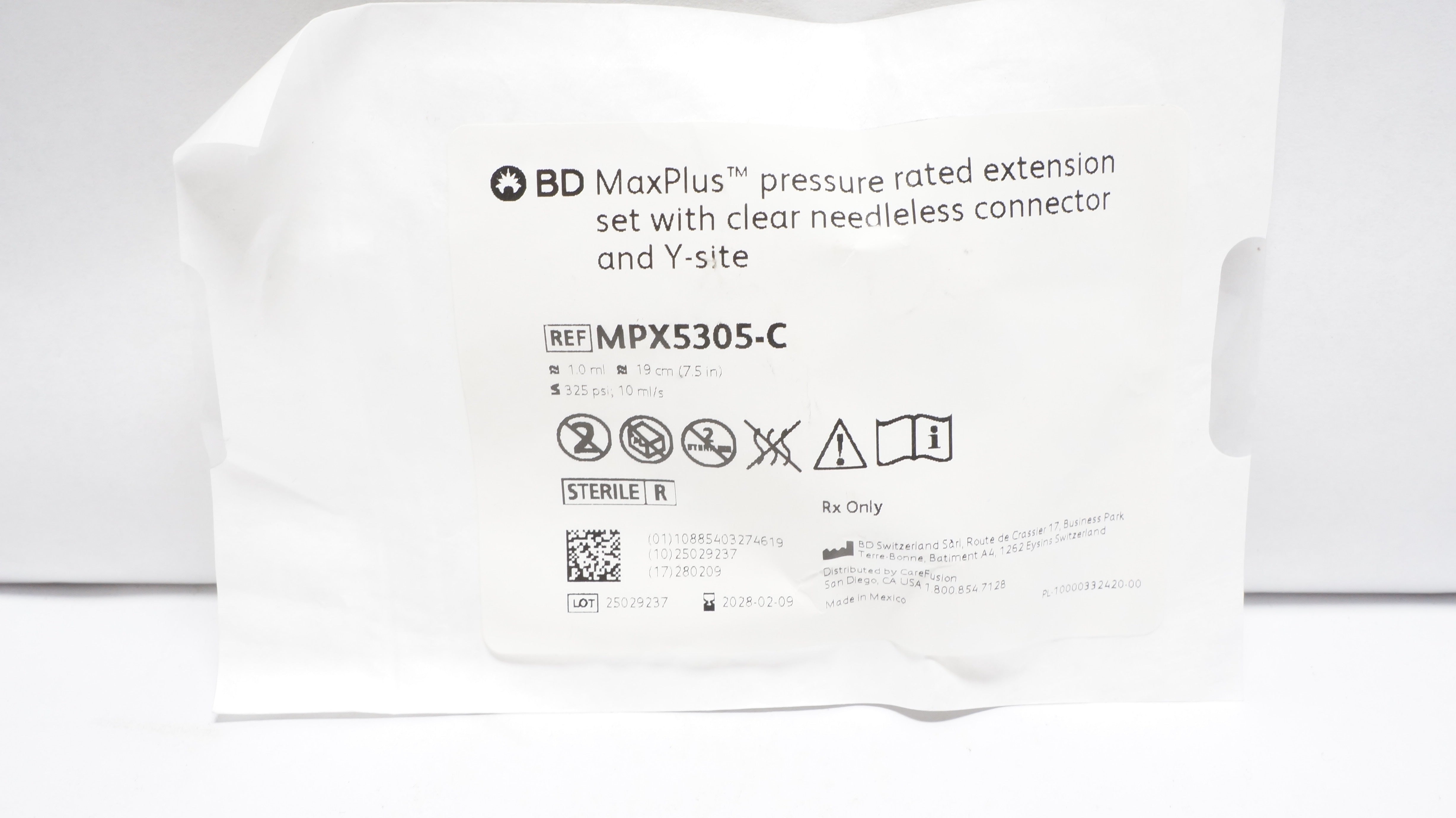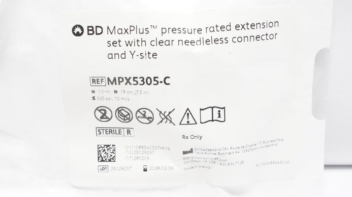 - BD MPX5305-C MaxPlus Pressure Rated Extension Set 1.0ml x 7.5inch Appx.
