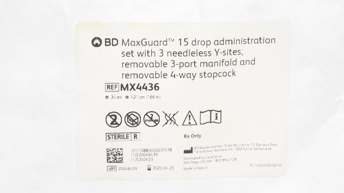 - BD MX4436 MaxGuard 15Drop Administration Set W/Needleless Y-Site 34ml x 166In(x)