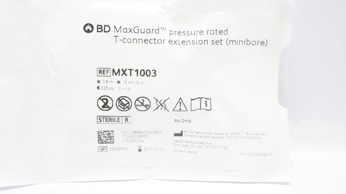 - BD MXT1003 MaxGuard Pressure Rated T-Connector Extension Set 0.8ml x 6inch(Appx)