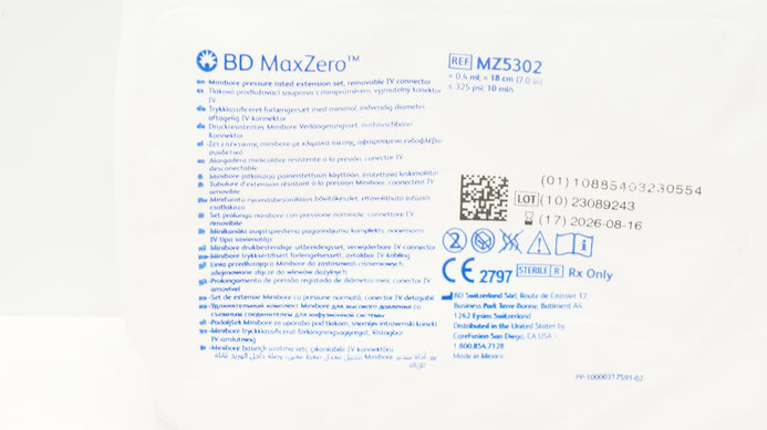 - BD MZ5302 MaxZero Minibore Pressure Rated Extension Set 0.4ml x 7.0inch
