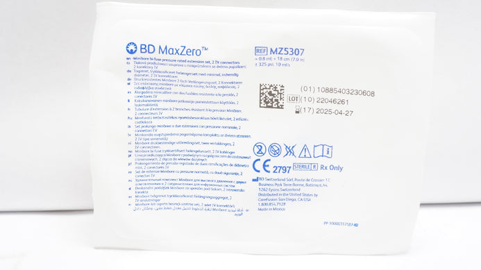 - BD MZ5307 MaxZero Microbore Bi-Fuse Extension Set 2 IV Connectors 7inchx0.8ml(x)