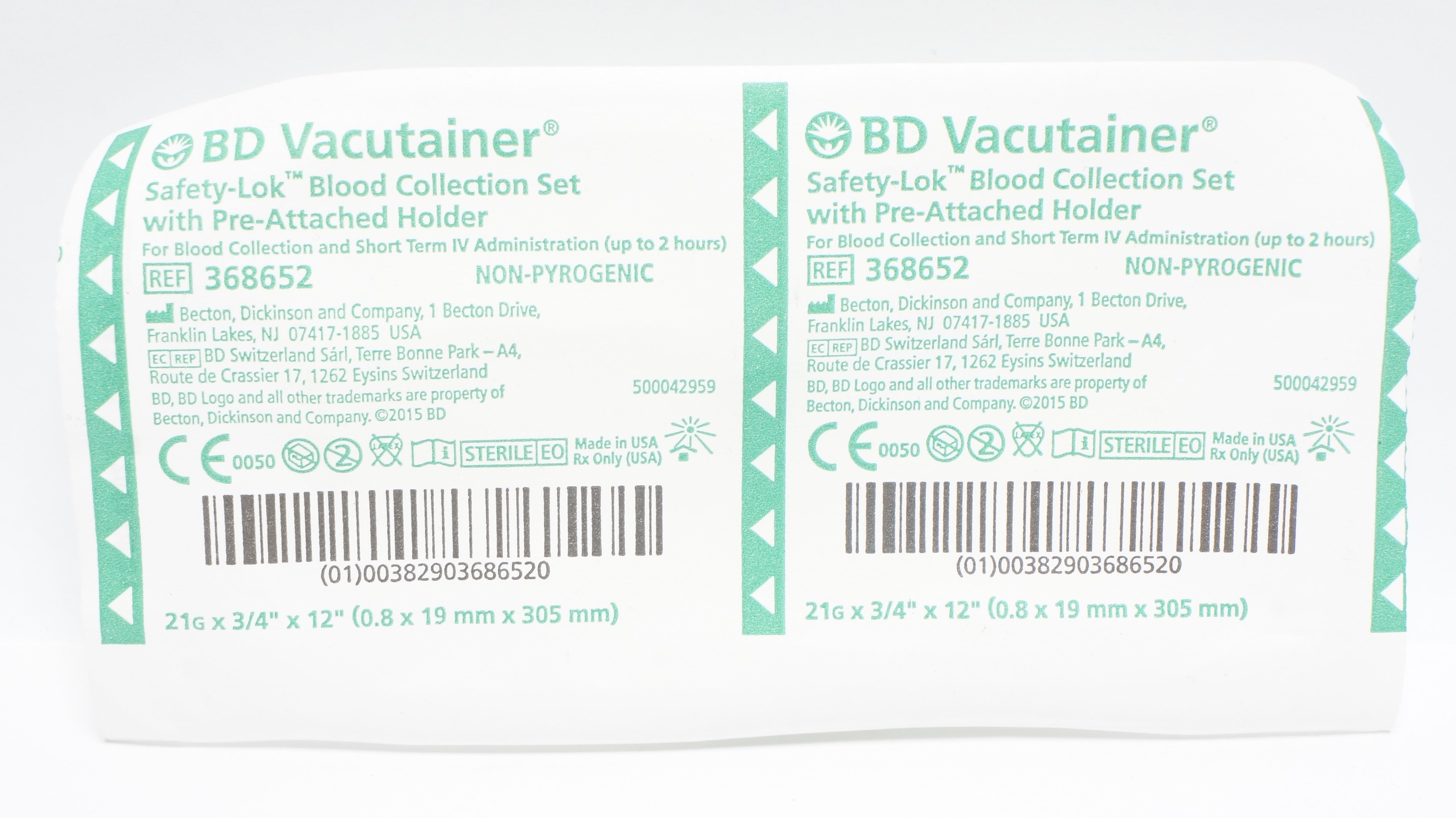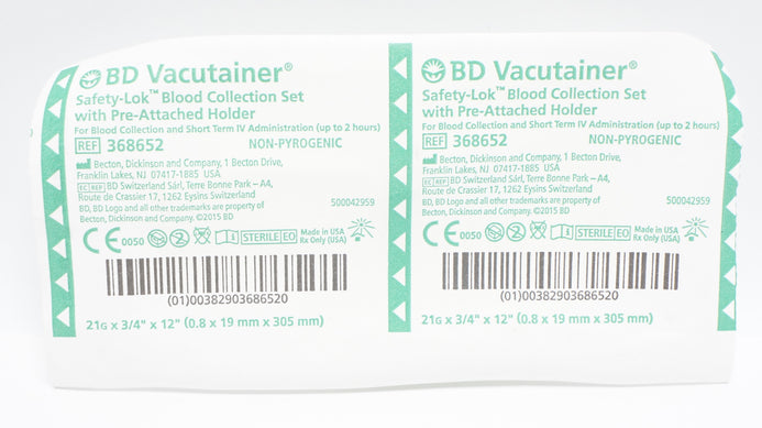 - BD Vacutainer 368652 Becton Safety-Lok Blood Collection Set 21G x 3/4x12inch