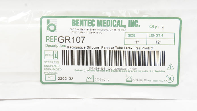 - Bentec Medical GR107 Radiopaque Silicone Penrose Tube, Size 1, 12inch (x)