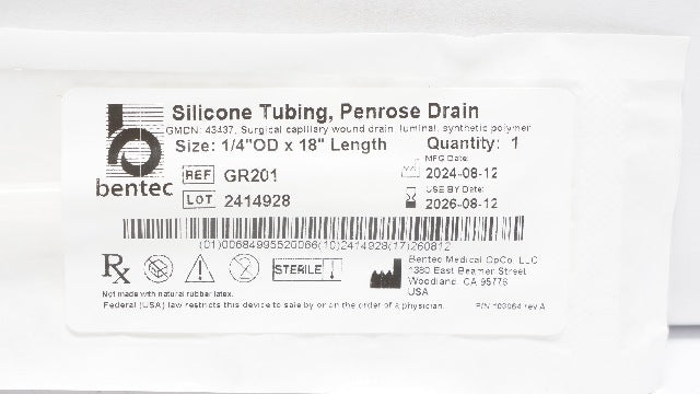 - Bentec Medical GR201 Radiopaque Silicone Penrose Tube 1/4inch x 18inch