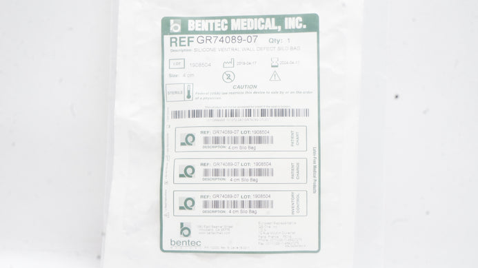 - Bentec Medical GR74089-07 Silicone Ventral Wall Defect Silo Bag, 4cm (x)