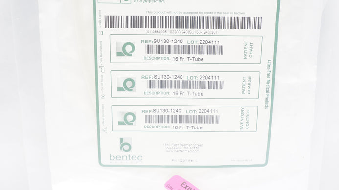 - Bentec Medical SU130-1240 Silicone T-Tube, Biliary Drainage Cath. 16Fr (x)