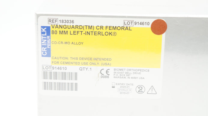 - Biomet 183036 Vanguard CR Femoral Left - Interlok 80mm Co-Cr-Mo Alloy (x)