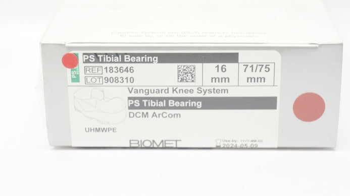 - Biomet 183646 Vanguard PS Tibial Bearing 16mm x 71/75mm (x)