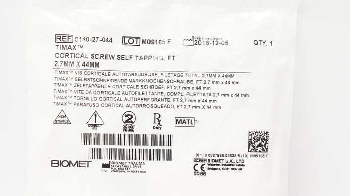 - Biomet 8140-27-044 Timax Cortical Screw Self Tapping, FT 2.7mm x 44mm