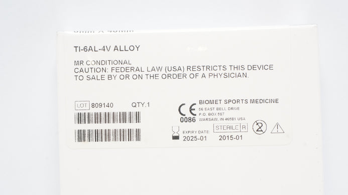 Biomet 908848 Washerloc Cancellous Screw 6.0mm x 48mm