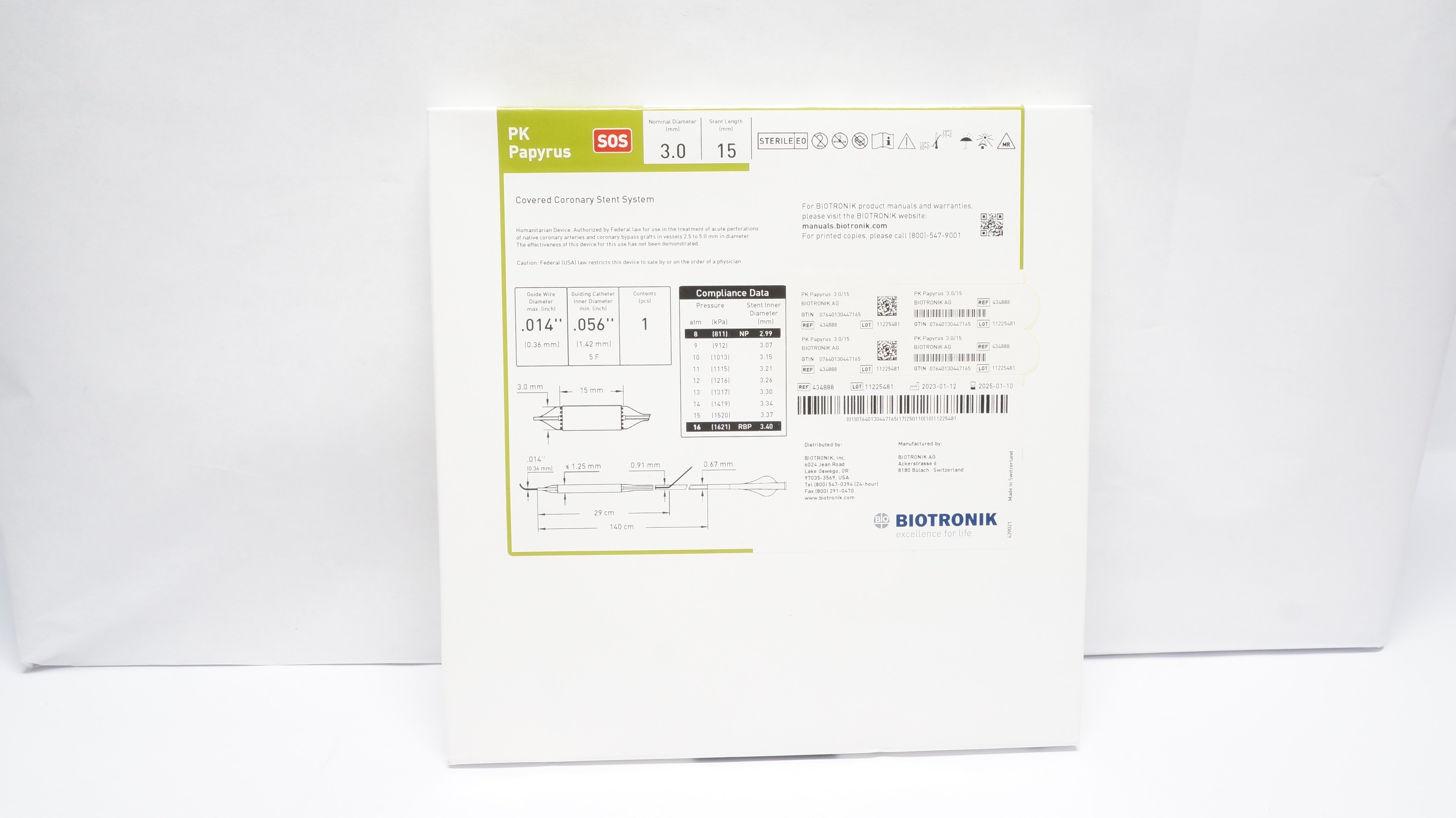 - Biotronik 434888 PK Papyrus Covered Coronary Stnt System 3.0mm x 15mm (x)