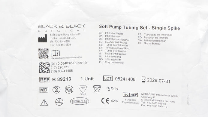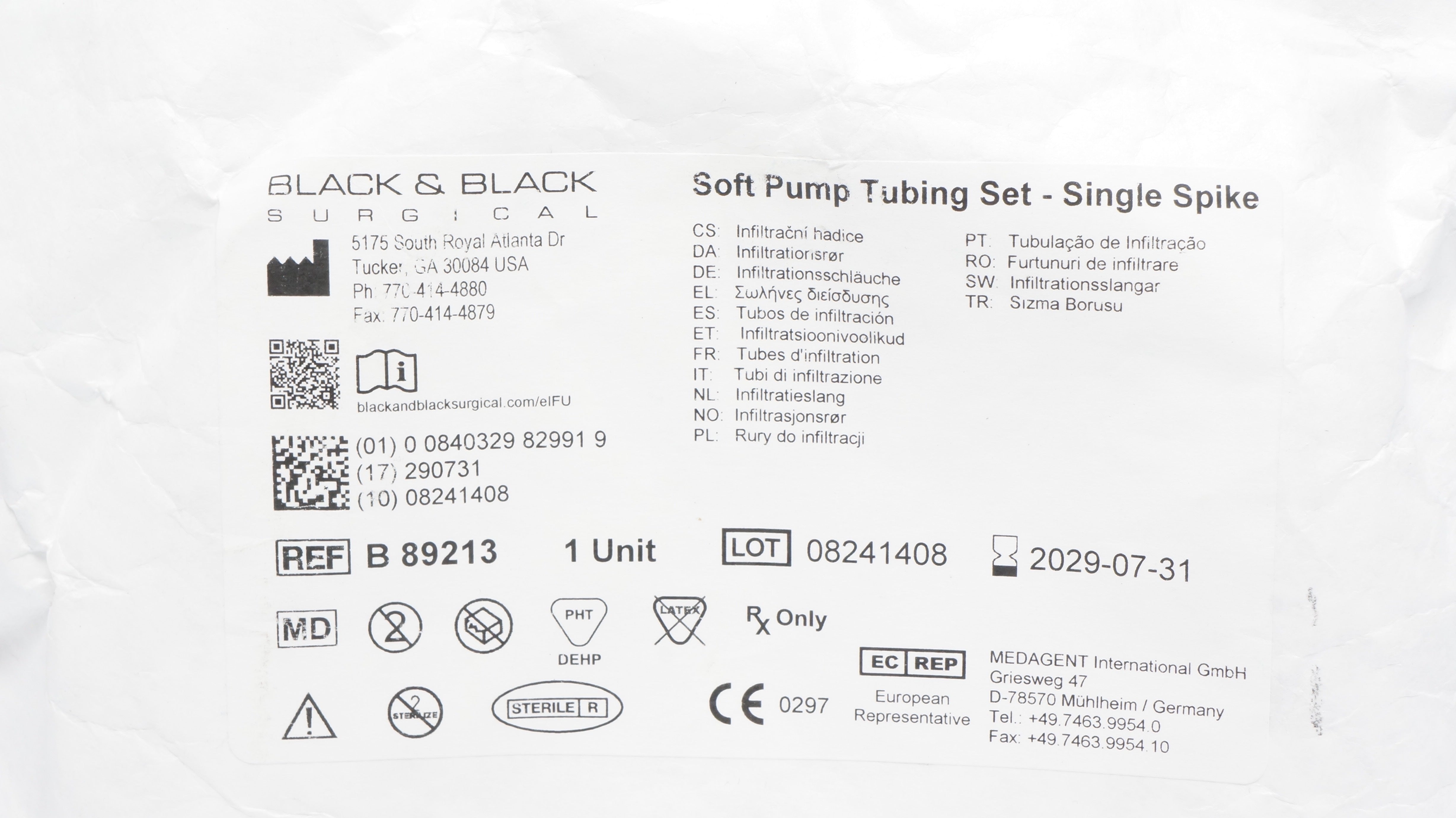 - Black&Black Surgical B 89213 Softouch Pump Tubing Set - Single Spike