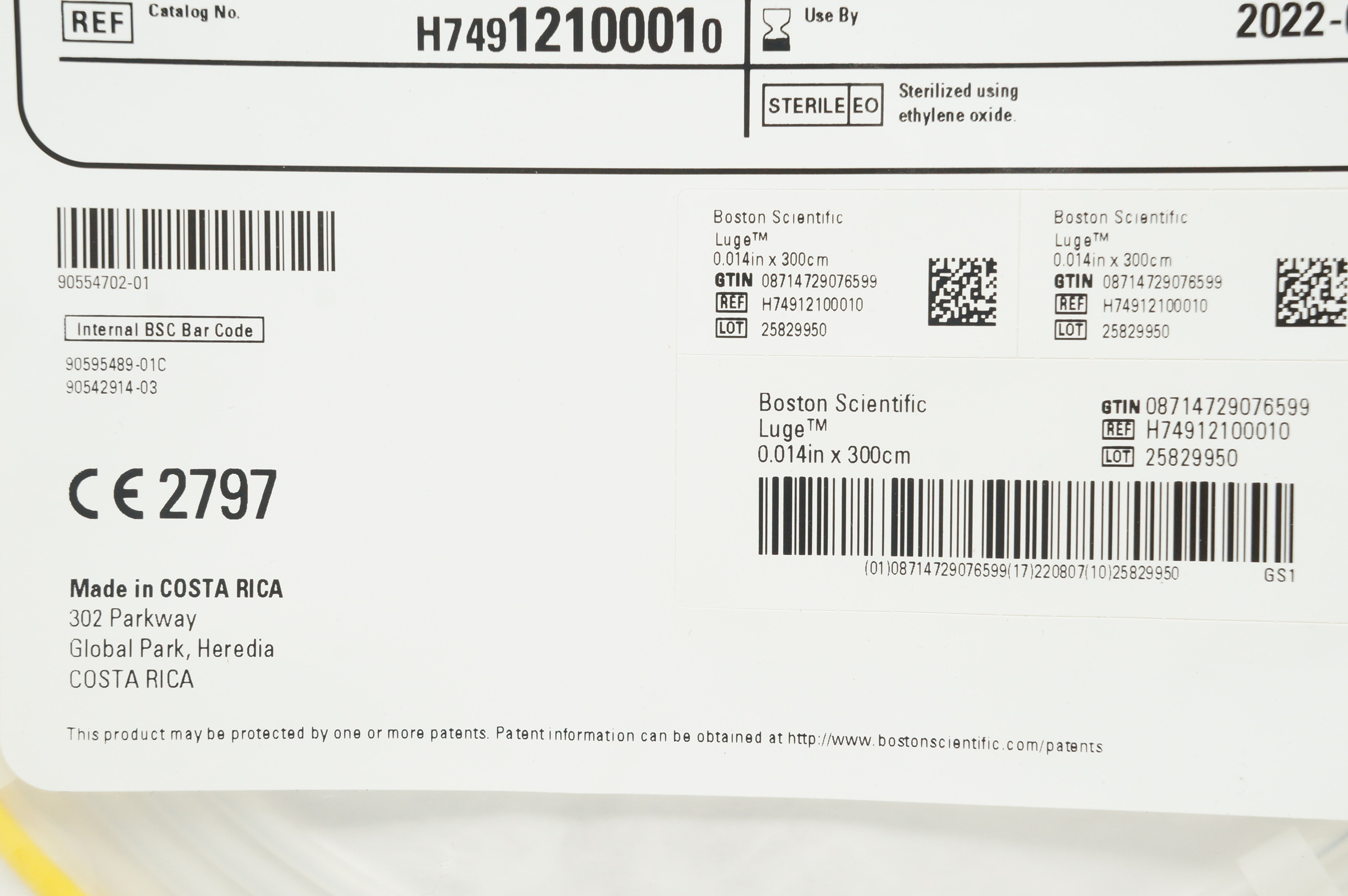 Boston Scientific 1210001 Luge Moderate Support Straight Tip Guidewire with Hydrophilic Coating 0.014in x 300cm