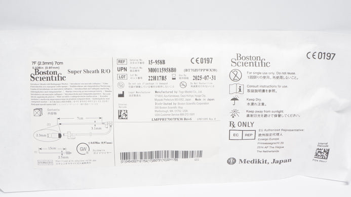 - Boston Scientific 15-958B Super Introducer Sheath R/O 7F x 7cm x 0.038inch (x)