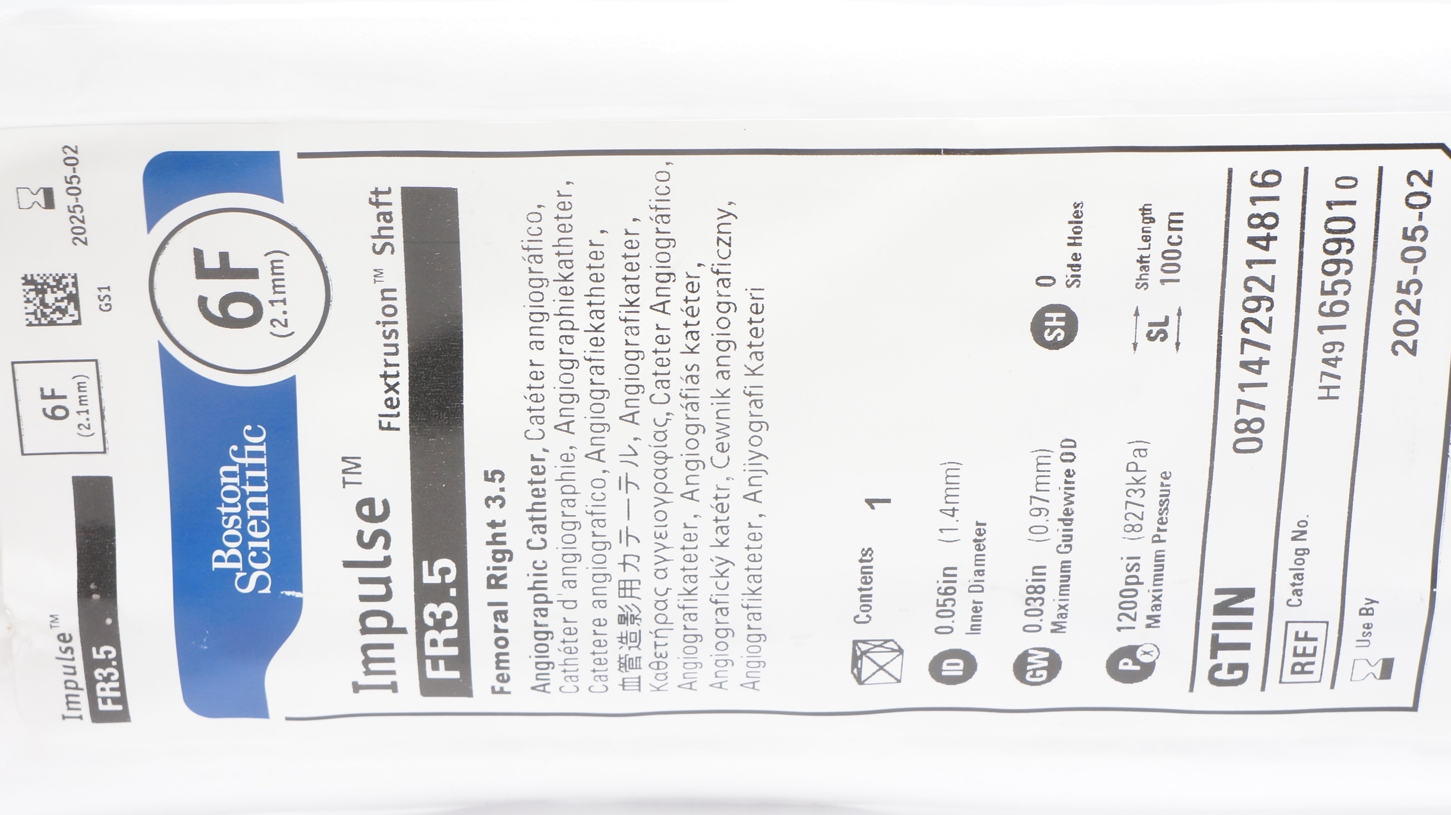 - Boston Scientific 1659901 Impulse FR3.5 Angiographic Cath. 6F (x)