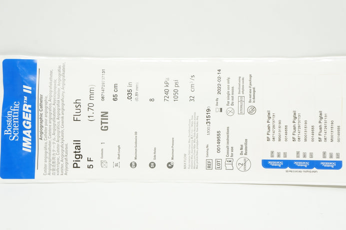 - Boston Scientific 31519 Imager II Autographic Cath, Pigtail Flush 7F x 65cm
