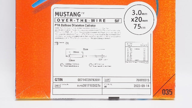 - Boston Scientific 3917103027 Mustang Over-The-Wire 5F x 3.0 x 20mm x 77cm (x)