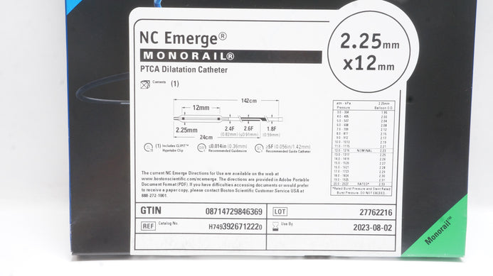 - Boston Scientific 392671222 NC Emerge PTCA Dilatation Cath. 2.25mm x 12mm (x)