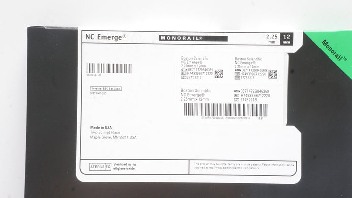 Boston Scientific 392671222 NC Emerge PTCA Dilatation Cath. 2.25mm x 12mm