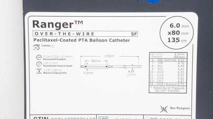 - Boston Scientific 3941960081 Ranger OTW 5F Paclitaxel-Coated PTA Balloon Cath(x)