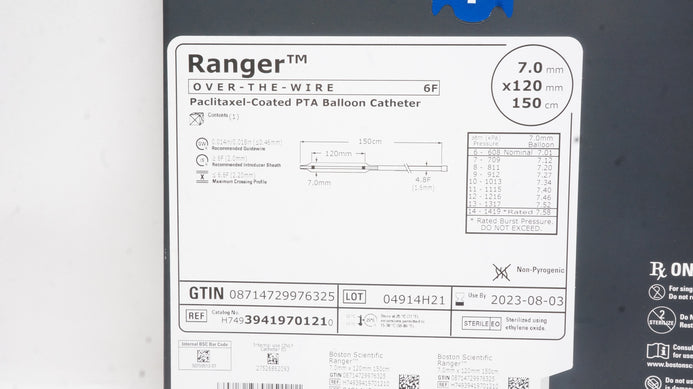 Boston Scientific 3941970121 Ranger Paclitaxel-Coated PTA Balloon Cath.6F, 7.0mm x 120mm x 150cm