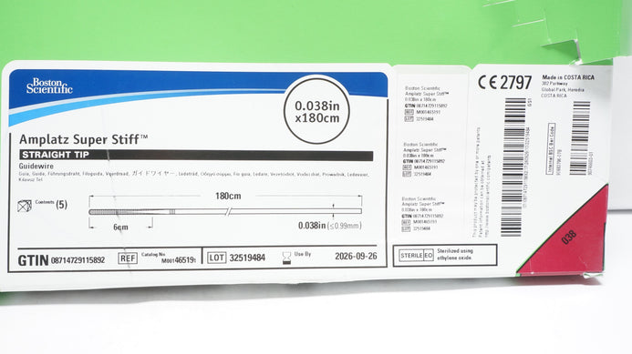 - Boston Scientific 46519 Amplatz Super Stiff Straight Tip 0.038in x180cm-Box of 5