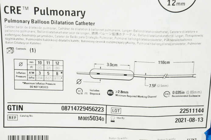 - Boston Scientific 5034 CRE Pulmonary Balloon Cath.10mm/11mm/12mm (x)