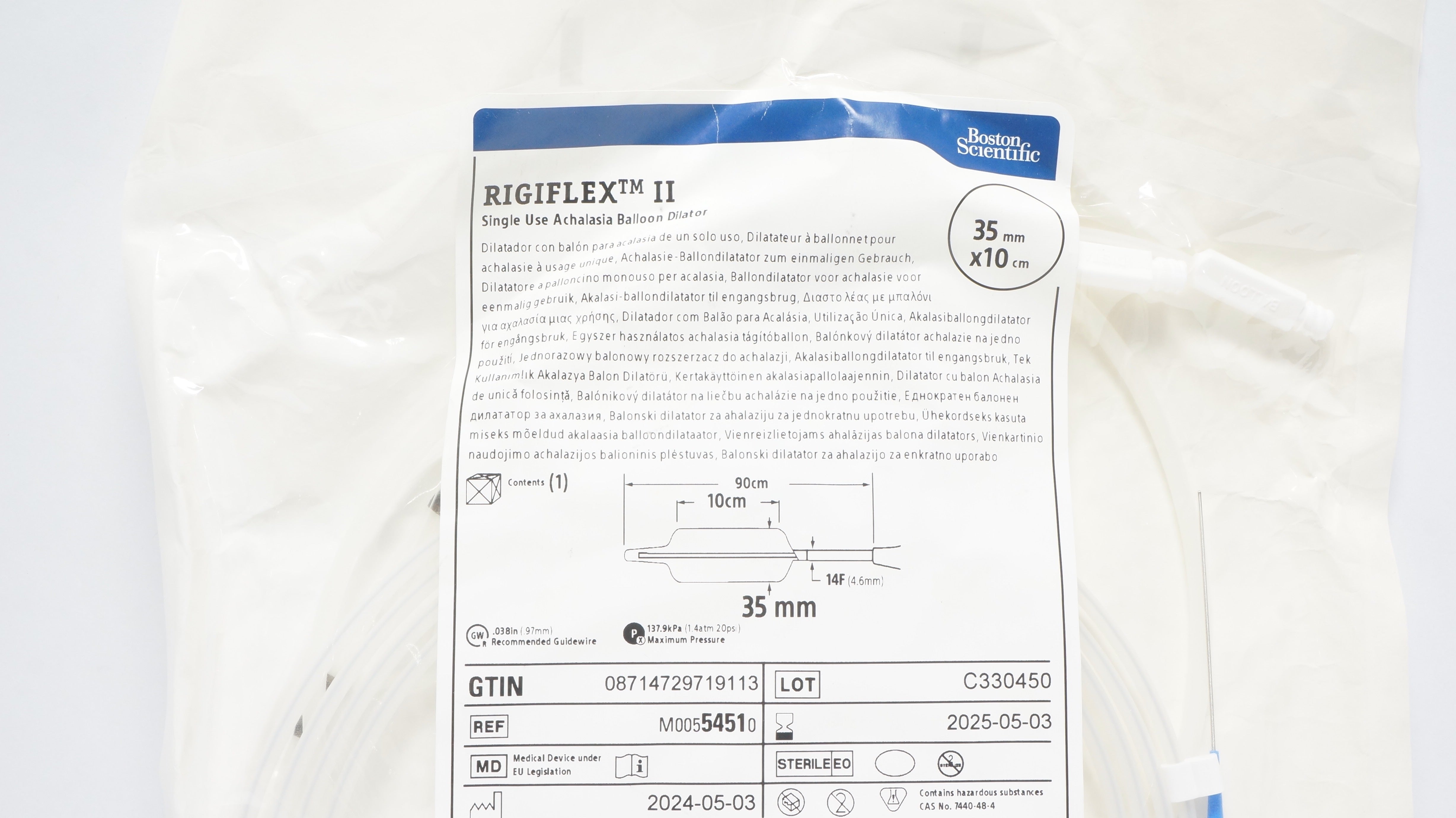 - Boston Scientific 5451 RigiflexII Achalasia Balloon Dilator 35-10/14-90 (x)