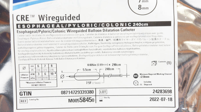 Boston Scientific 5845 CRE Wireguided Eposhageal/Pyloric/Colonic Balloon Dilatation Catheter 6mm x 7mm x 8mm