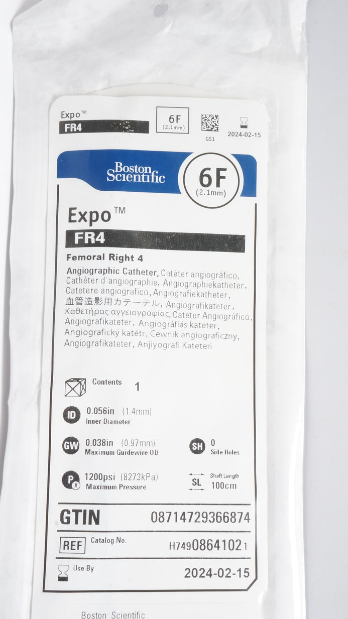 - Boston Scientific H74908641021 Expo Femoral Right 4 Angiographic Cath. 6F (x)