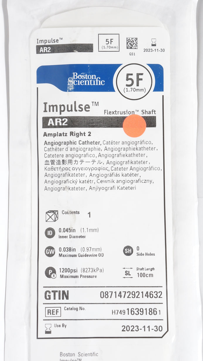 - Boston Scientific H74916391861 Impulse Amplatz Right 2 Angiographic Cath. 5F (x)