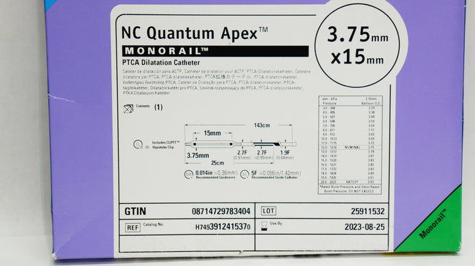 - Boston Scientific H7493912415370 Monorail PTCA Dilatation Cath. 3.75 x 15mm (x)