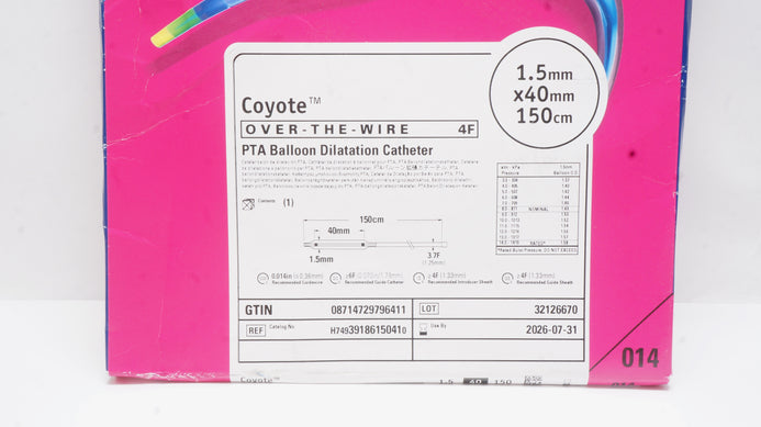 - Boston Scientific H74939186150410 Coyote PTA Balloon Cath. 1.5mm x 40mm x 150cm