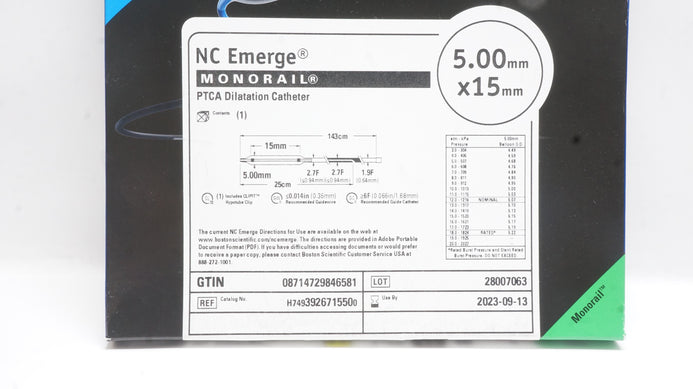 - Boston Scientific H7493926715500 Monorail PTCA Dilatation Cath. 5.00mm x 15mm(x)