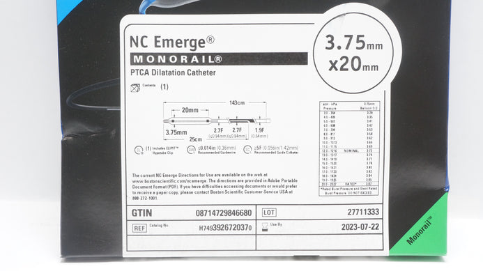 - Boston Scientific H7493926720370 Monorail PTCA Dilatation Cath. 3.75 x 20mm (x)