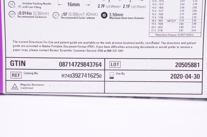 - Boston Scientific H7493927416250 Rebel Monorail Platinum Chromium Coronary Stent System, 2.50mm x 16mm (x)