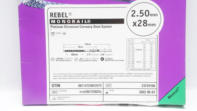 - Boston Scientific H7493927428250 Rebel Coronary Stnt System 2.50mm x 28mm (x)