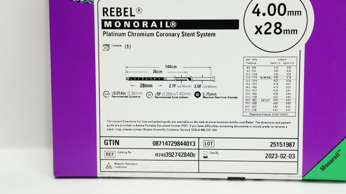 - Boston Scientific H7493927428400 Rebel Monorail Stnt System 4.00mm x 28mm (x)